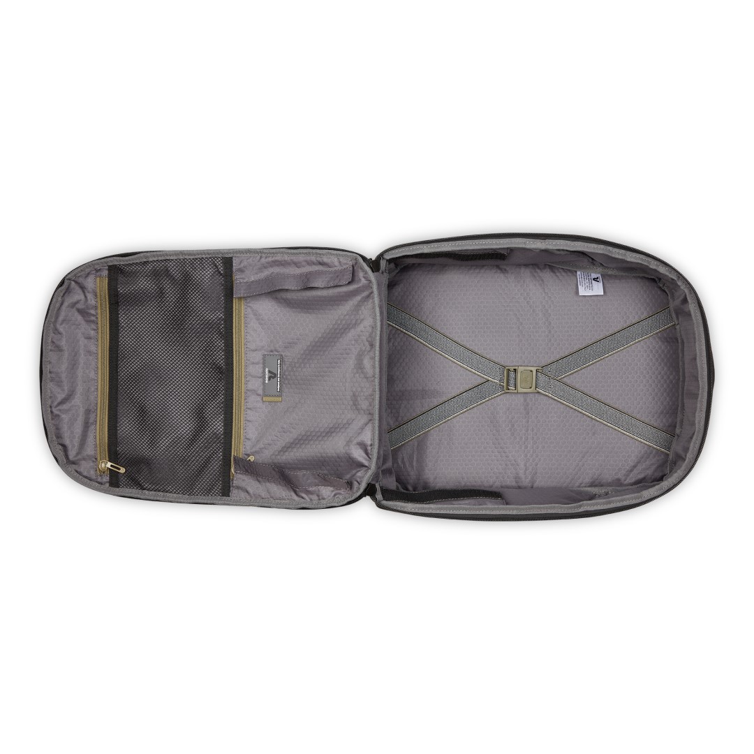 Otváranie batohu vychádza z kufrového princípu , ale je riešené zhora. Pri bežnom používaní je spodná časť istená všitým prvkom so suchým zipsom, ktorý bráni nechcenému otvoreniu a vypadnutiu obsahu. Vo chvíli, keď potrebujete plný prehľad, napríklad na hoteli, je možné toto istenie jednoducho rozopnúť a batoh úplne otvoriť. Samozrejmosťou sú vnútorné vrecká, sťahovacie popruhy v hlavnej komore a predné vrecko na drobnosti.